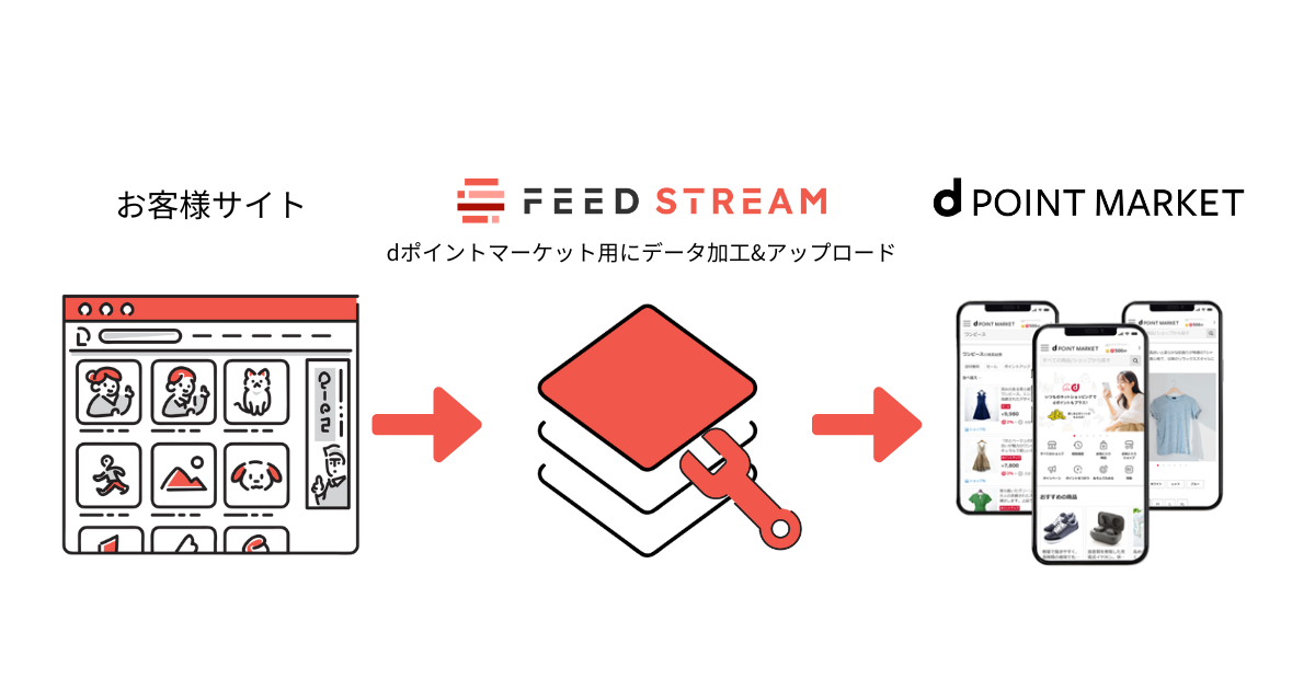メディアストリーム株式会社(本社:東京都品川区、代表取締役社長:ラン・ホアン)が提供するデータフィードサービス「FEED STREAM」は、株式会社NTTドコモ(本社所在地:東京都千代田区、代表取締役社長:前田 義晃)が提供する新サービス「dポイントマーケット®」への対応を開始しました。